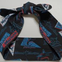 A Miami Marlins headband is a versatile and fun way to show off your team pride! Wear on your head, neck, wrist, straw hat, belt loop, purse or wherever you want an accent of Miami Marlins colors of black, blue, red and white.