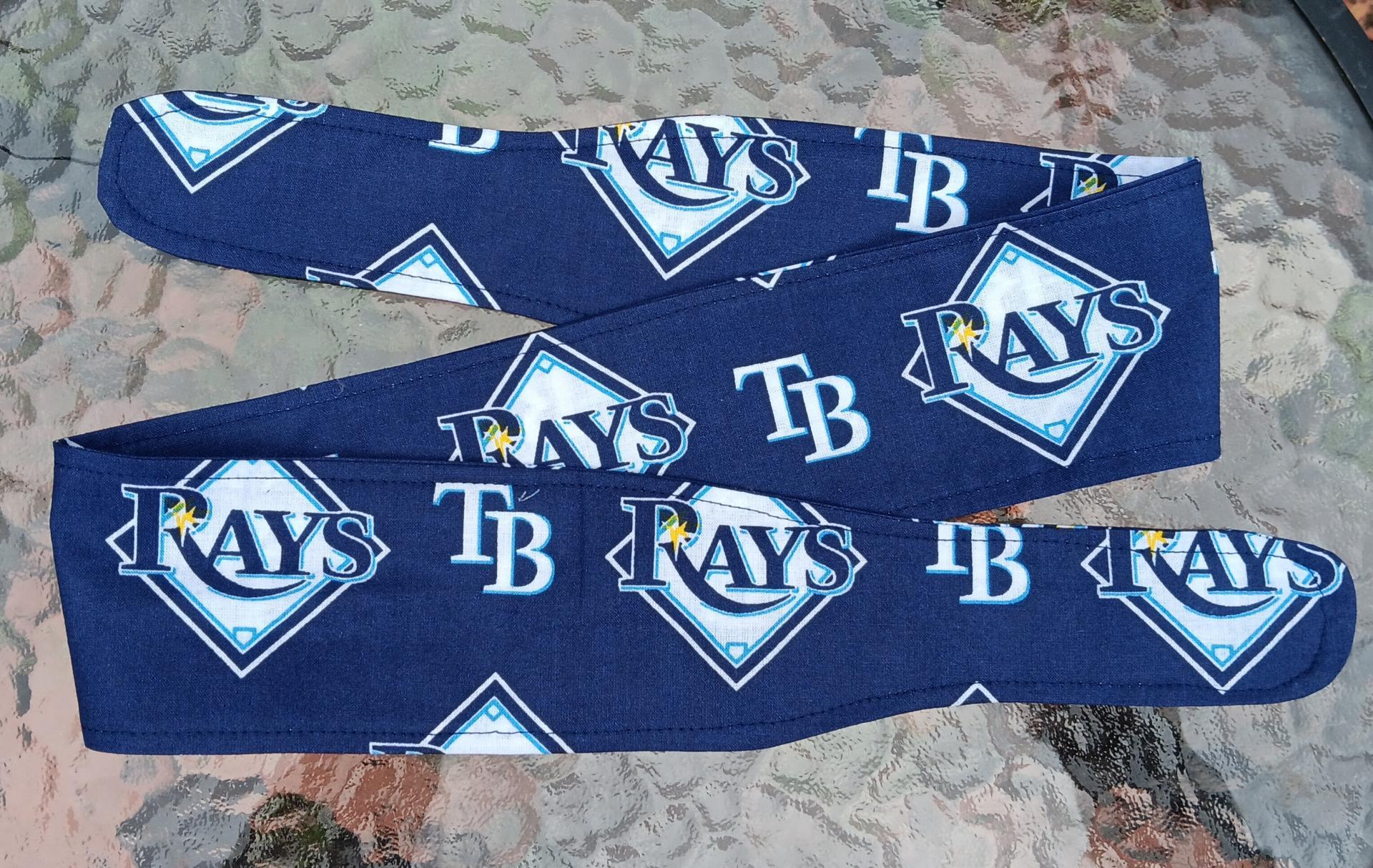 A Tampa Bay Rays self tie headband is a fun and versatile way to show off your team pride! Wear on your head, neck, wrist, straw hat, belt loop, purse or wherever you want a Rays accent. Not affiliated with the team or MLB in any way. Handmade from licensed fabric.