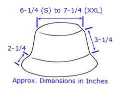 Top diameter (crown): 6-1/4" (S) to 7-3/4" (4XL)