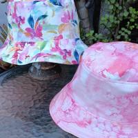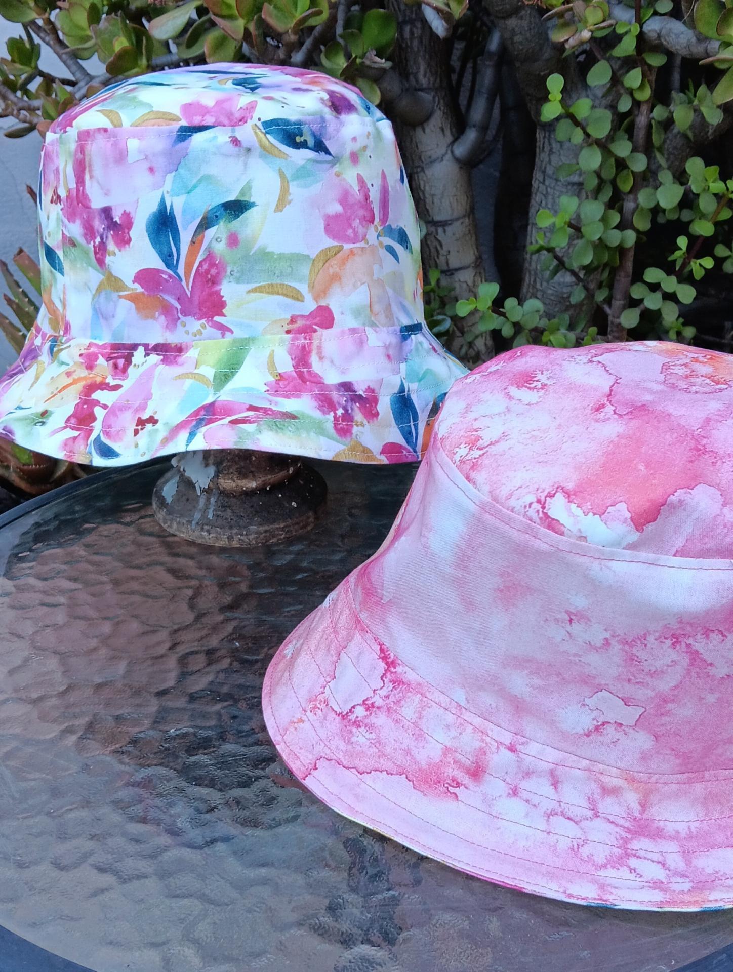 Watercolor style floral print bucket hat makes a great summer or travel hat! Wear to the beach, on a cruise, in the pool, to a garden wedding, or around town.